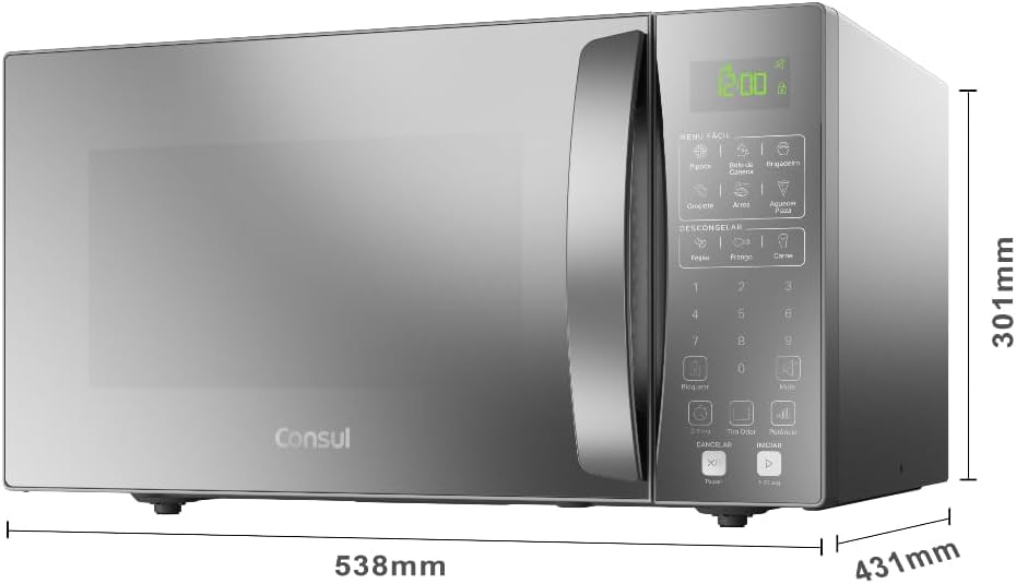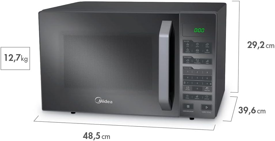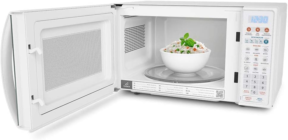 Micro-ondas Midea vai se tornar seu melhor amigo na cozinha. Retirar xícaras e canecas vai ser muito mais fácil: possui Prato Inteligente, que retorna a alça dos recipientes para a posição inicial. O Micro-ondas Midea é super completo! Com Função Preferido, é possível deixar salvo o programa e tempo de suas receitas prediletas. Além de todas essas facilidades, conta com Minuto Fácil para acesso rápido de 1,2 ou 3 minutos, Função Tira Odor, Limpa Fácil e Função Eco para mais economia de energia com o visor desligado. Baixo consumo de energia- classificação A, * Função Aquecer, * Função ECO, * Função Tira Odor, * Menu Descongelar, * Tecla Ligar/+30 segundos, * Trava de segurança que bloqueia o painel