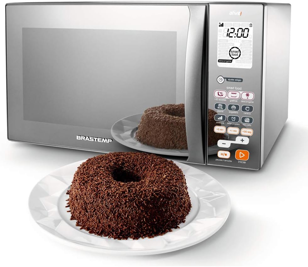 Micro-ondas BMJ38 Ative! da Brastemp, conta com 1000W de potência e 38 litros de capacidade, possui amplo espaço interno e é ideal para o preparo de receitas em grandes recipientes. Equipado com Grill, conta também com Painel Digital com Funções Smart Food, Adiar Preparo e Meu Jeito para receitas personalizadas. São mais de 10 receitas com potências e tempos pré-programados para facilitar o seu dia a dia na cozinha, entre elas: Carne moída, Macarrão, Arroz, Peixe, Omelete, Legumes, Sopa, Suflê, Pudim, Bolo de caneca, Pipoca e Brigadeiro. Relógio, luz interna, prato giratório, descongelamento e outros recursos!