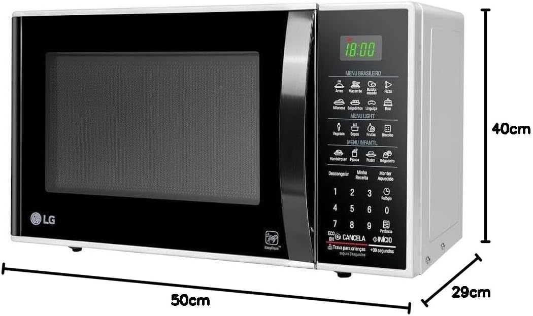 O LG possui tecnologia de cozimento e descongelamento uniforme dos alimentos. Chega de esquentar a pizza só nas bordas ou sofrer descongelando um bife pela metade. Redescubra o que você pode fazer com seu micro-ondas. Com 16 receitas pré-programadas. Faça receitas deliciosas de bolo, sopas, arroz e até pudim de leite, tudo ao toque de um botão. O LG conta com o inovador revestimento Limpa Fácil. Esse revestimento interno evita a penetração da gordura. O resultado é um produto fácil de limpar e sem a necessidade de produtos químicos. Ficha Técnica Potência 800W Modelo: MS3091BC Cor: Branco 110V / Revestimento antibacteriano Receitas pré-programadas Função manter aquecid Descongelamento: Economia de energiaEco on / Capacidade total: 30 L / Eficiência energética: 54,9 / Classificação: A